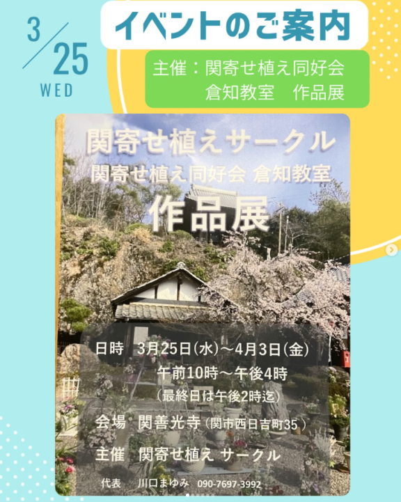 『関寄せ植え同好会 倉地教室』 の作品展が開催されます。