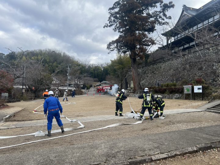 消防署・消防団・関市役所文化財保護センターが連携し、