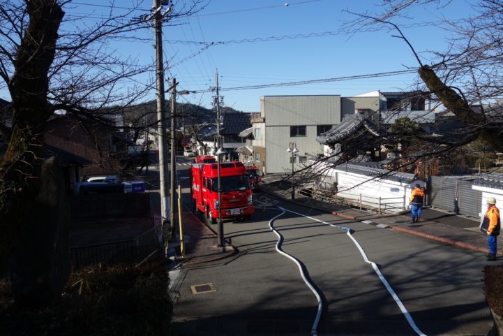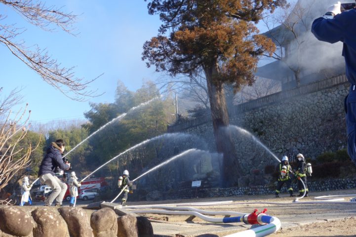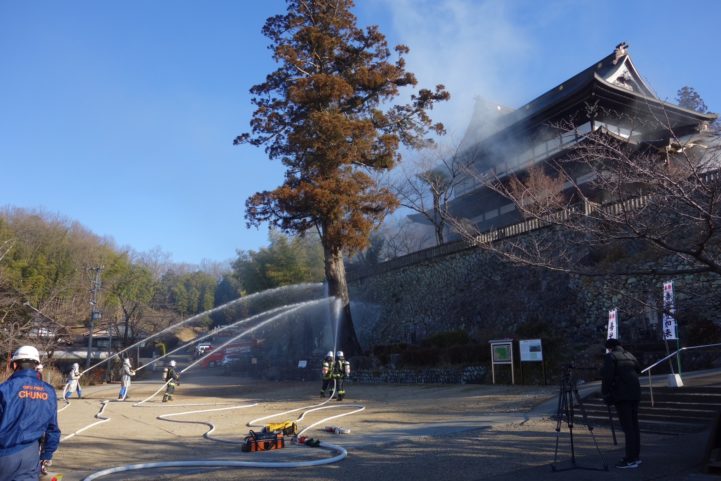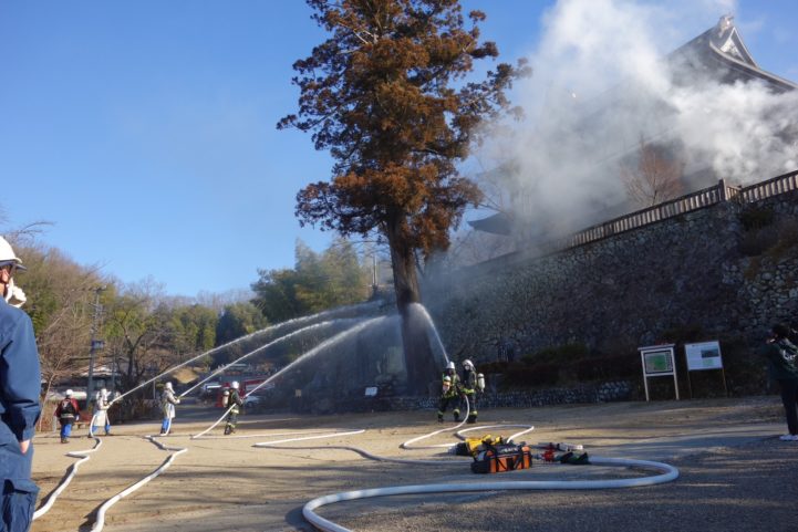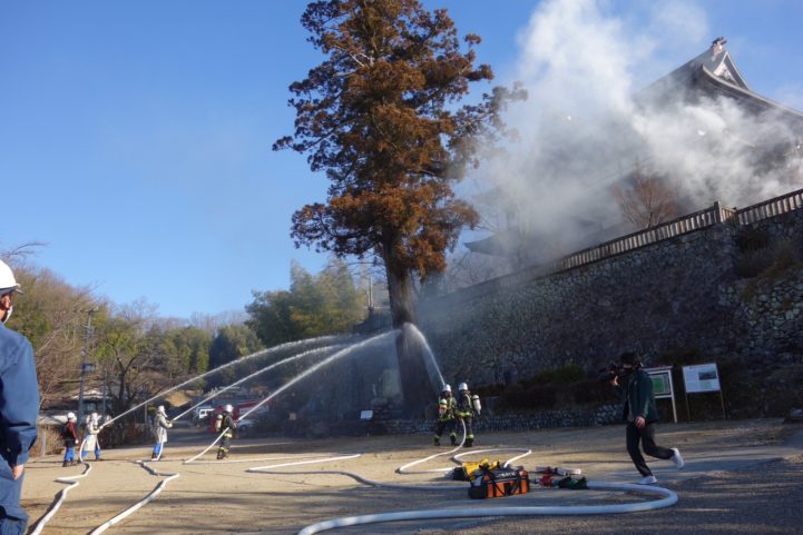 消防署・消防団・関市役所文化財保護センターが連携し、