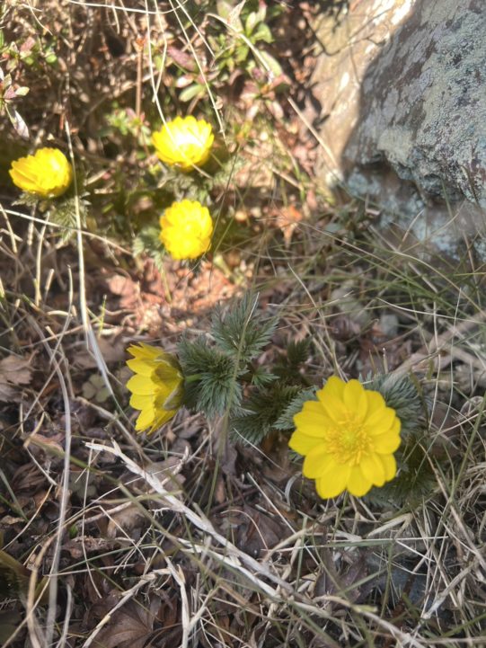 春の訪れを静かに告げる花、福寿草が今年も境内に顔を出しました。